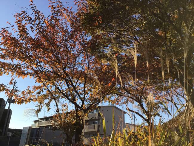 ボヌール近くの中学校の木々が色づいてきましたよ