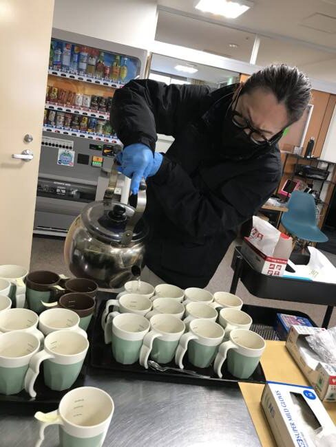 大きなやかんを用意して皆様の珈琲タイムの準備も余念がありません!