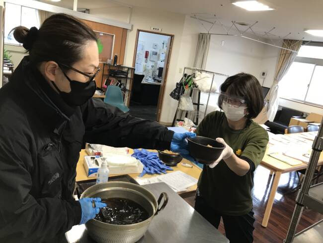熱々のスープを盛り付けたら冷めない内に出発です!