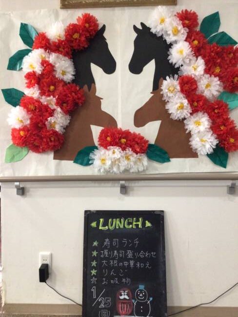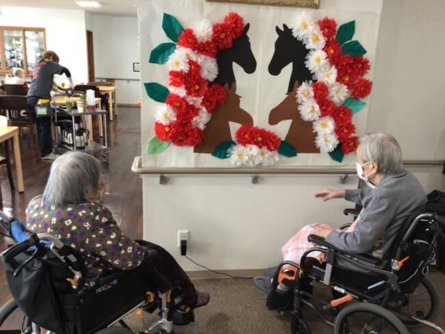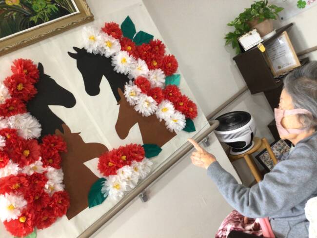 入居者様が一つ一つ椿の花を作って下さいました