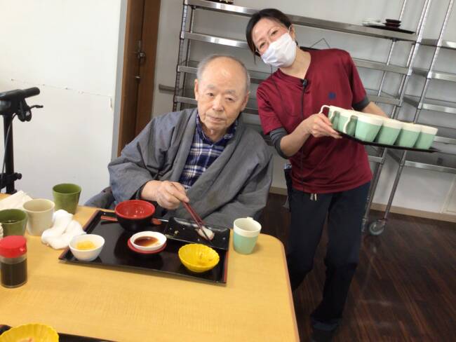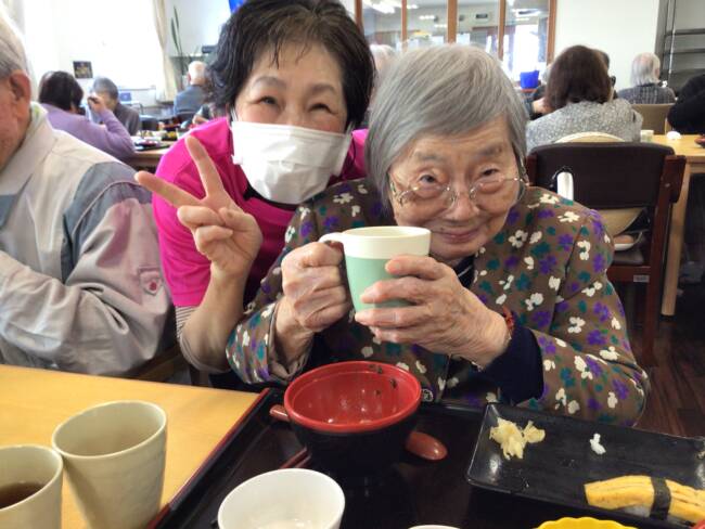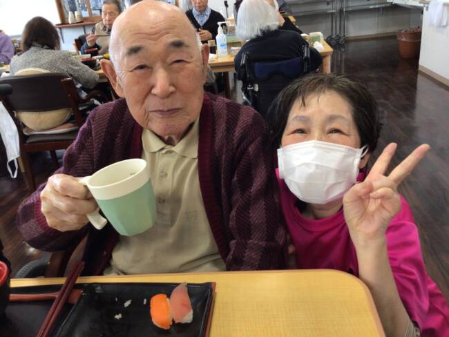 皆様が楽しみにされていた握り寿司、ぱくぱくニコニコと、とても良い笑顔で