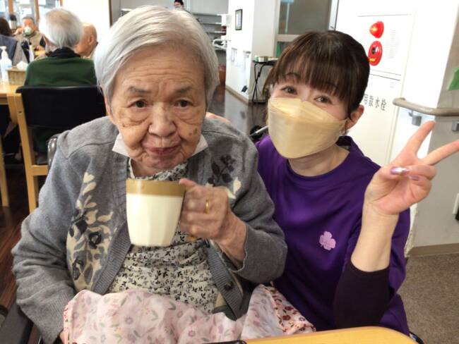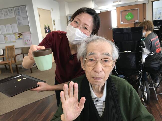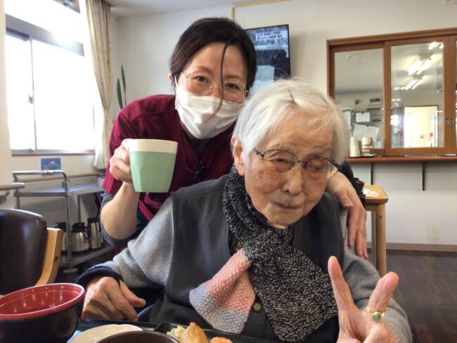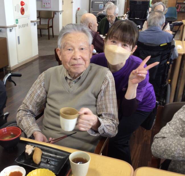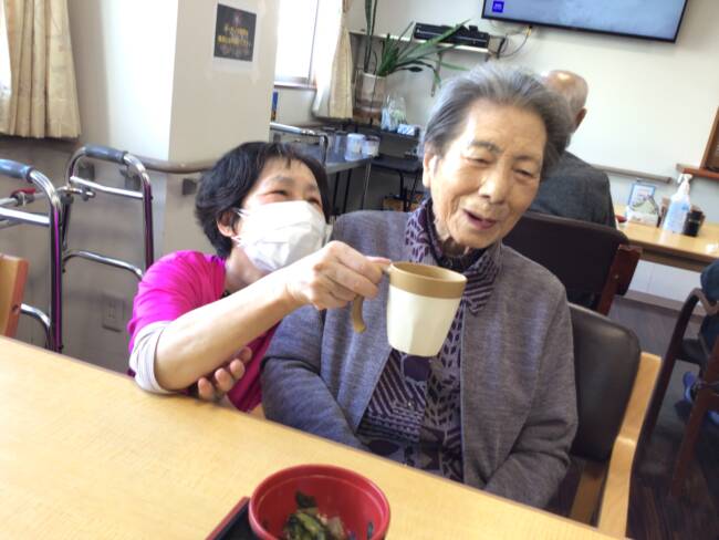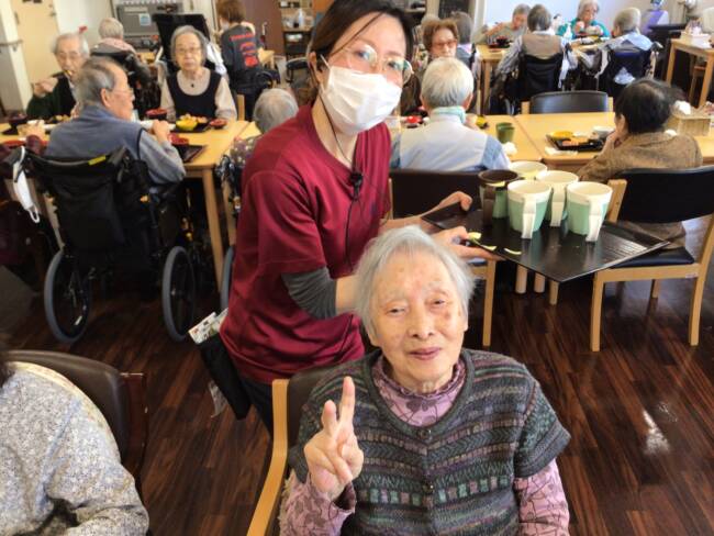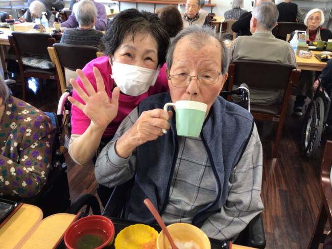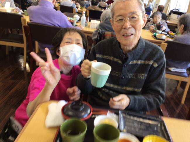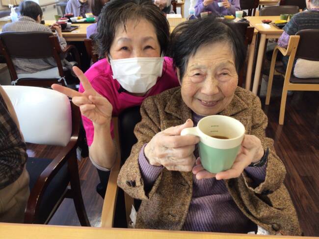 食後は手早くおしぼりを畳んで下さった後、仲良しさん同士のおしゃべりタイムも