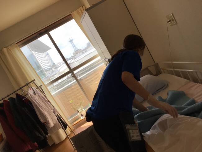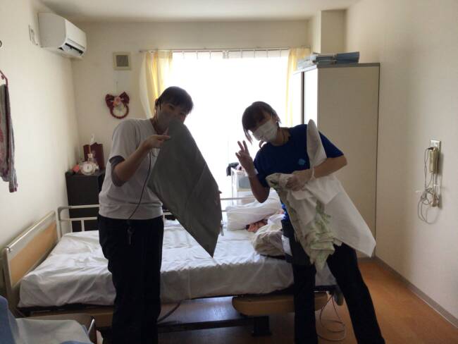時には入居者様とおしゃべりしながら進めています