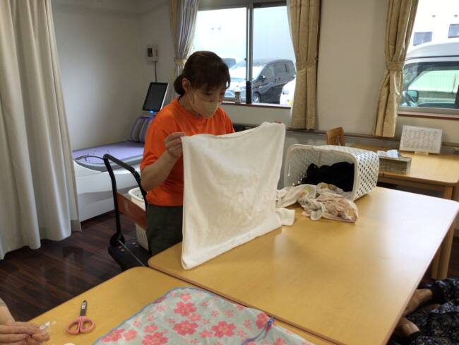 シーツ交換の後は、洗濯物たたみですね👕