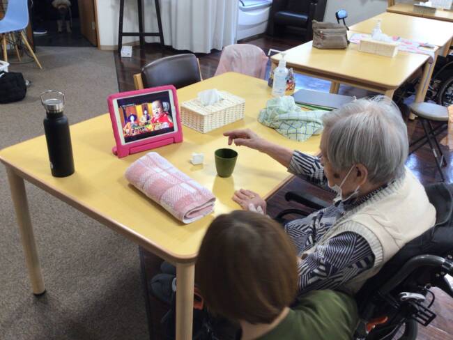 入居者様を見守る「おかゆさん」。真剣な眼差しですね👀