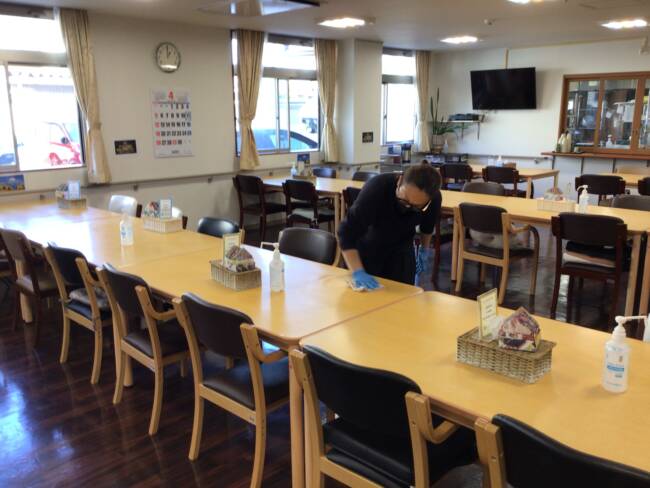 今日は名古屋施設長が消毒してくれました!