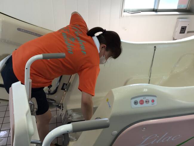 機械浴を綺麗に掃除する千秋先生です(‘◇’)ゞ