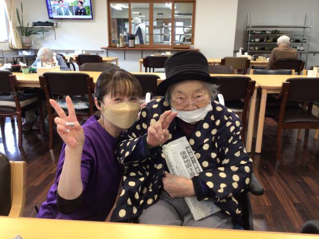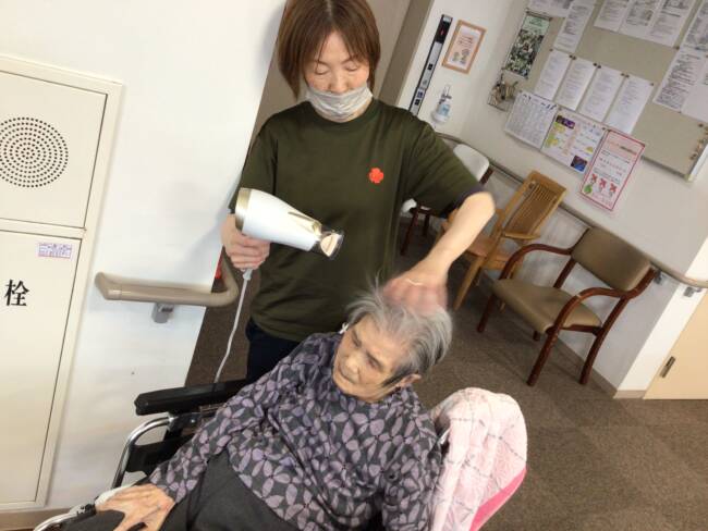 入浴後の整容もしっかり行い、素敵な笑顔で「ハイ、ポーズ!📸✨」