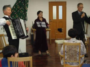 まずは『ナツメロ スタジアム 絆』様による歌とアコーディオンの演奏!