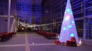 先日、朱鷺メッセから、ホテル日航新潟へ、行く途中の、廊下の、イルミネーションを観ました (^◇^)
