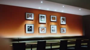 照明も、ダウンライトで、テーブルや椅子も、ダークブラウンで、統一しています。