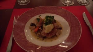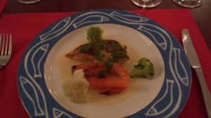魚料理は ぼたん海老とすずきのグリル 温野菜添え